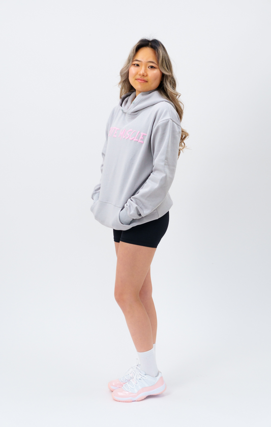 EM Premium Charcoal Grey & Pink Puff Print Hoodie